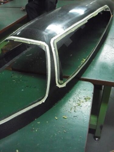 2012年1月12日(木) 今日の作業は、車体の下半分の型の離型剤塗りと、 上の車体のマスキングテープ除去作業と目印付けをしました。 車体の下半分の型の離型剤塗りは、 何度も何度も繰り返し離型剤を塗って、乾かして、拭く…という 作業を行っています。 今…